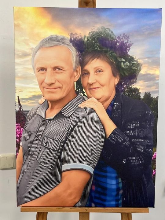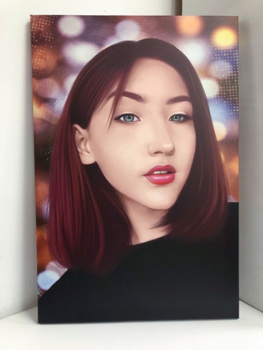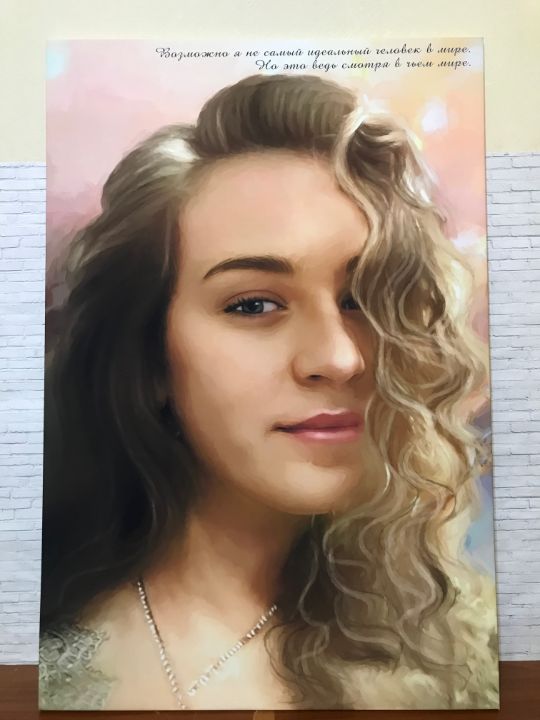 Картина рисуется на графическом планшете, в компьютерной программе. С учётом всех Ваших пожеланий художник нарисует великолепный портрет, который подчеркнёт внешние достоинства персонажа и при этом сохранит 100% сходство с человеком.