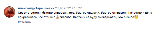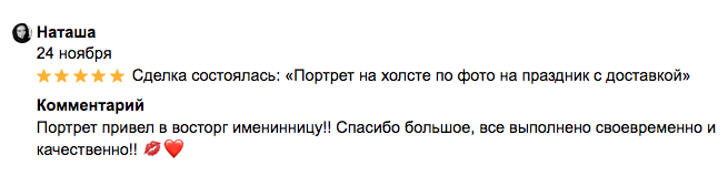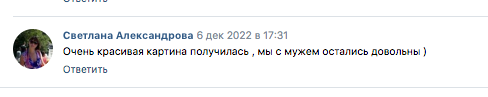 Приступаем при предоплате 50%. Полная стоимость оплачивается только по готовности картины, так же возможна оплата картины при получении. (Кол-во бесплатных правок не ограничено)